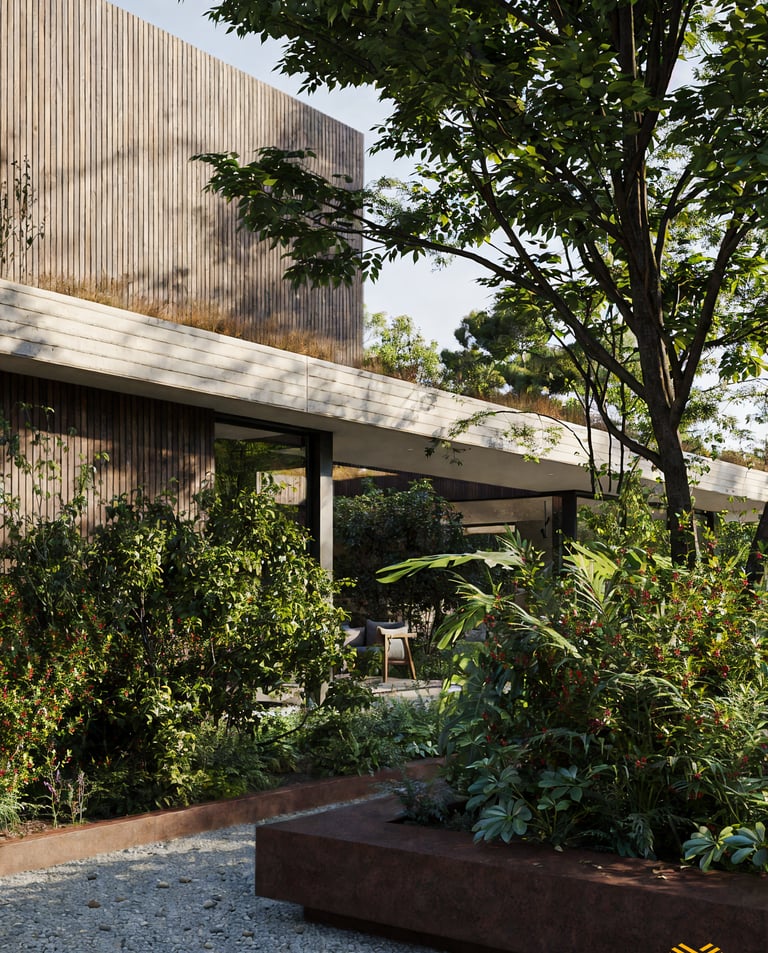 Renders exteriores con nivel de hiperrealismo fotográfico, desarrollados con precisión técnica y coherencia ambiental.